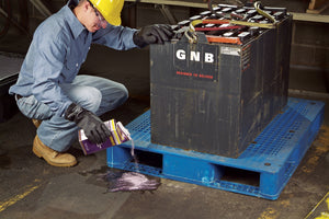 Sorbent changes color to tell you when absorbed acids have been neutralized and are safe to clean up.