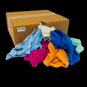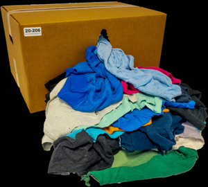 Keywords': 20-206,Varies,Wiping Cloths,Multicolored,Recycled Rags,Recycled Cotton-Blend,9,Sweatshirt rags tend to have a smooth jersey texture on one side with a fluffier 'downy' style texture on the reverse side,Fleece,20 LB Compressed Box,19,17