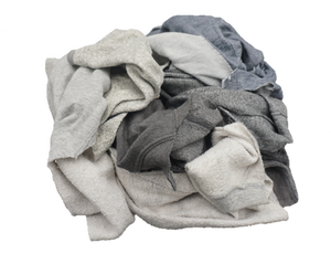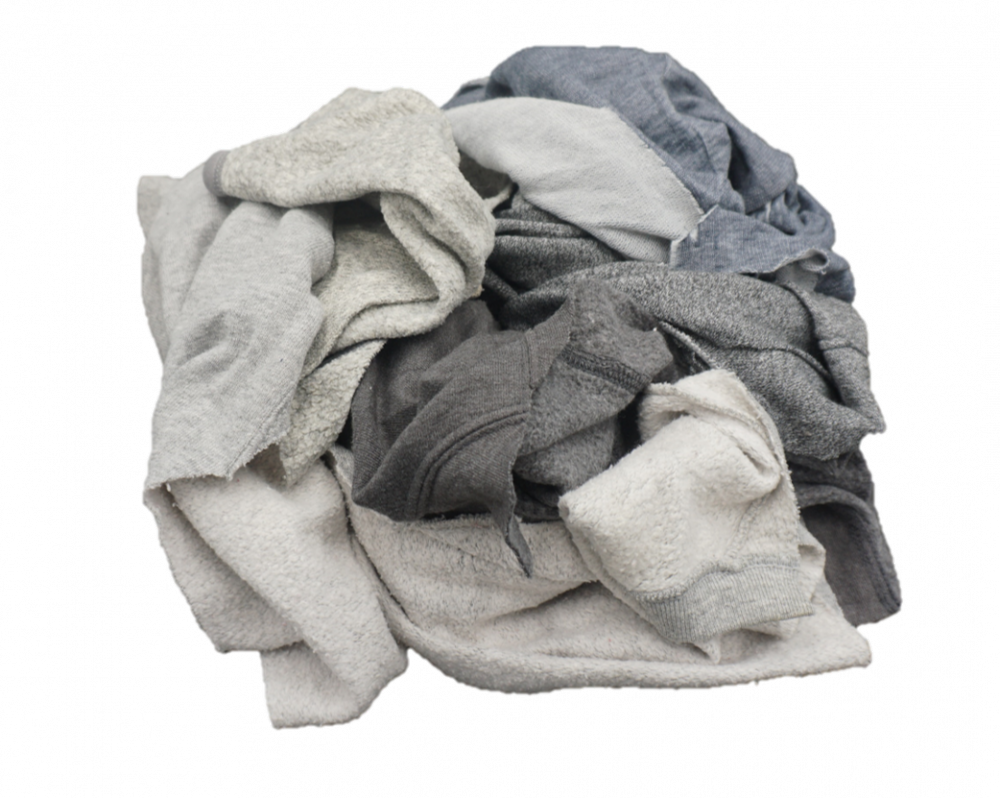 Keywords': 20-206G,Varies,Wiping Cloths,23,25 LB Box,16,13,Recycled Rags,Recycled Cotton-Blend,Gray,Sweatshirt rags tend to have a smooth jersey texture on one side with a fluffier 'downy' style texture on the reverse side,Fleece