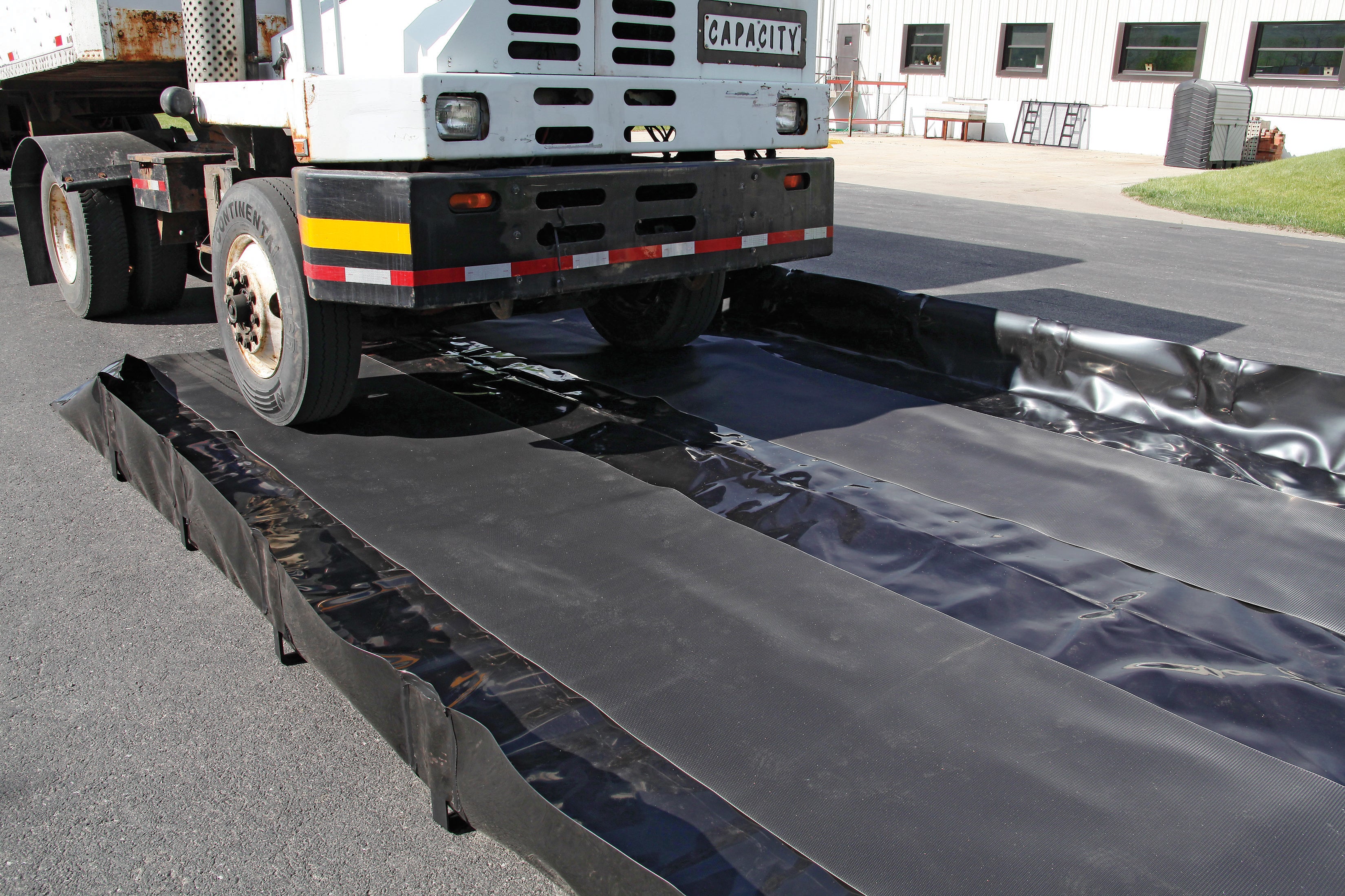 Heavy-duty, reusable track guard protects your containment berm from tire abrasion.