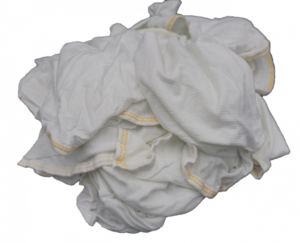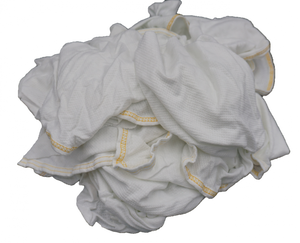 Keywords': Varies,Wiping Cloths,50 LB Box,23,20,21,Recycled Rags,White,Contains recycled waffle weave knitted cotton material from sheets,Recycled Cotton-Blend