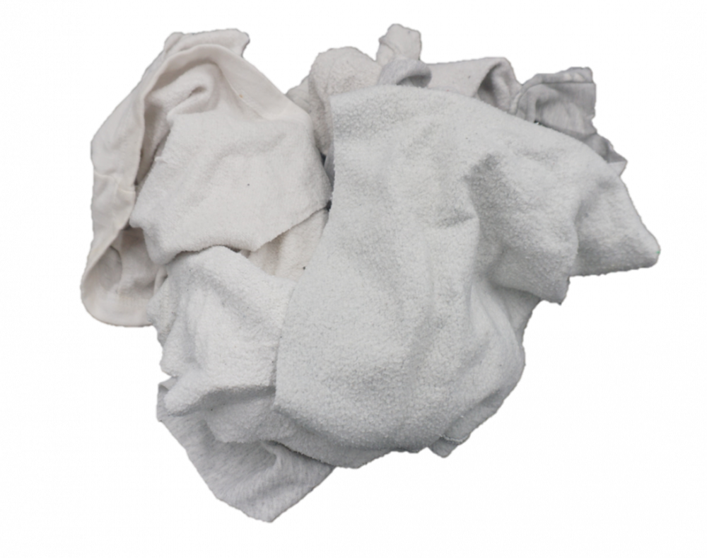 Keywords': 20-206W,Varies,Wiping Cloths,23,25 LB Box,16,13,Recycled Rags,White,Recycled Cotton-Blend,Sweatshirt rags tend to have a smooth jersey texture on one side with a fluffier 'downy' style texture on the reverse side